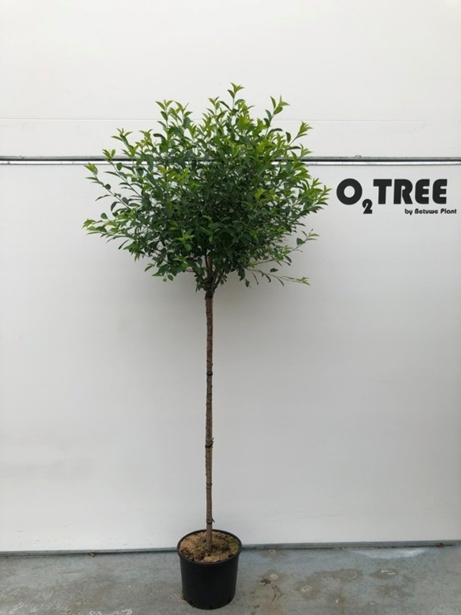 Lav, kompakt, løgformet busk, der ofte dyrkes på stamme som et lille træ. Løvfældende. Små mørkegrønne blade, efterårsfarven orangerød. Små hvide blomster i april - maj. Beskæring efter blomstringen. Sol.
