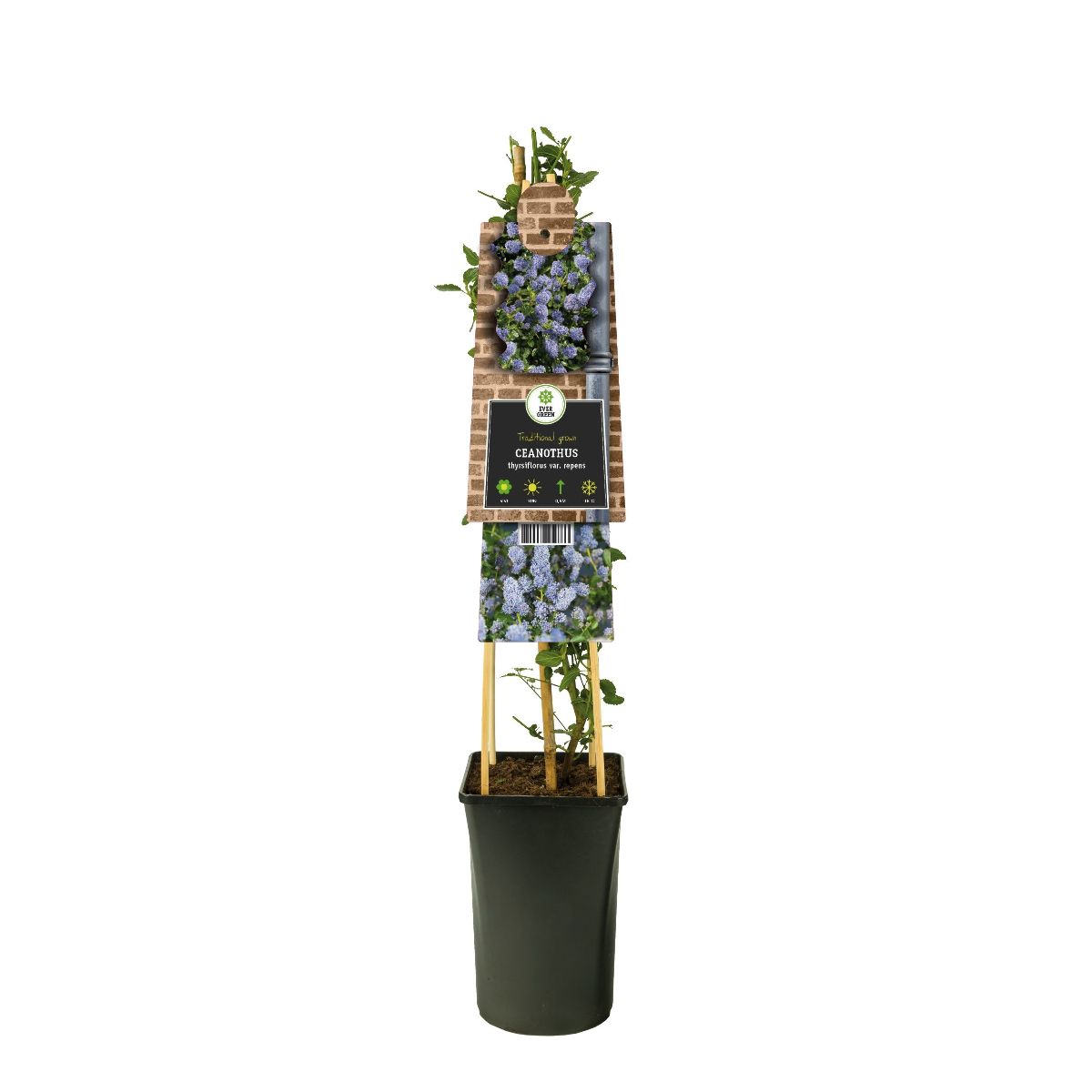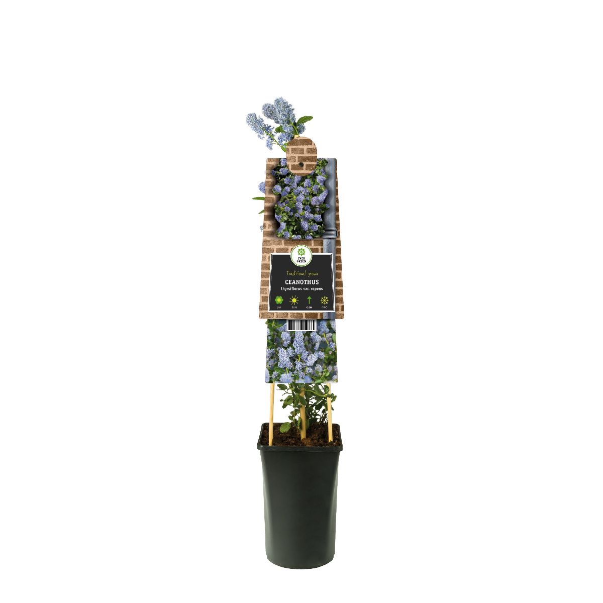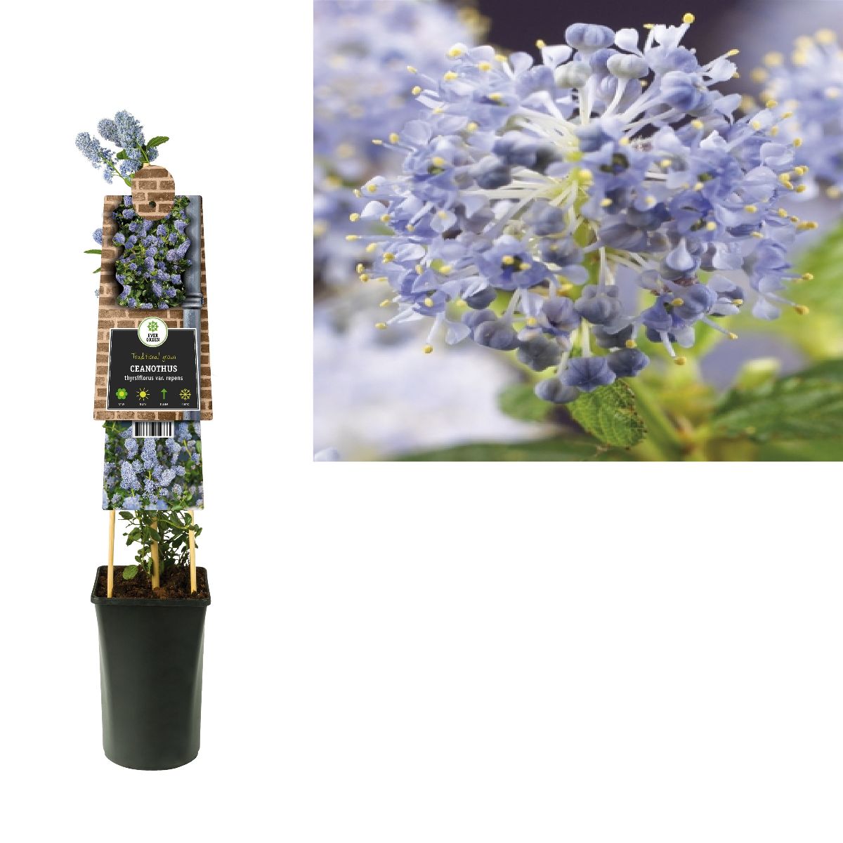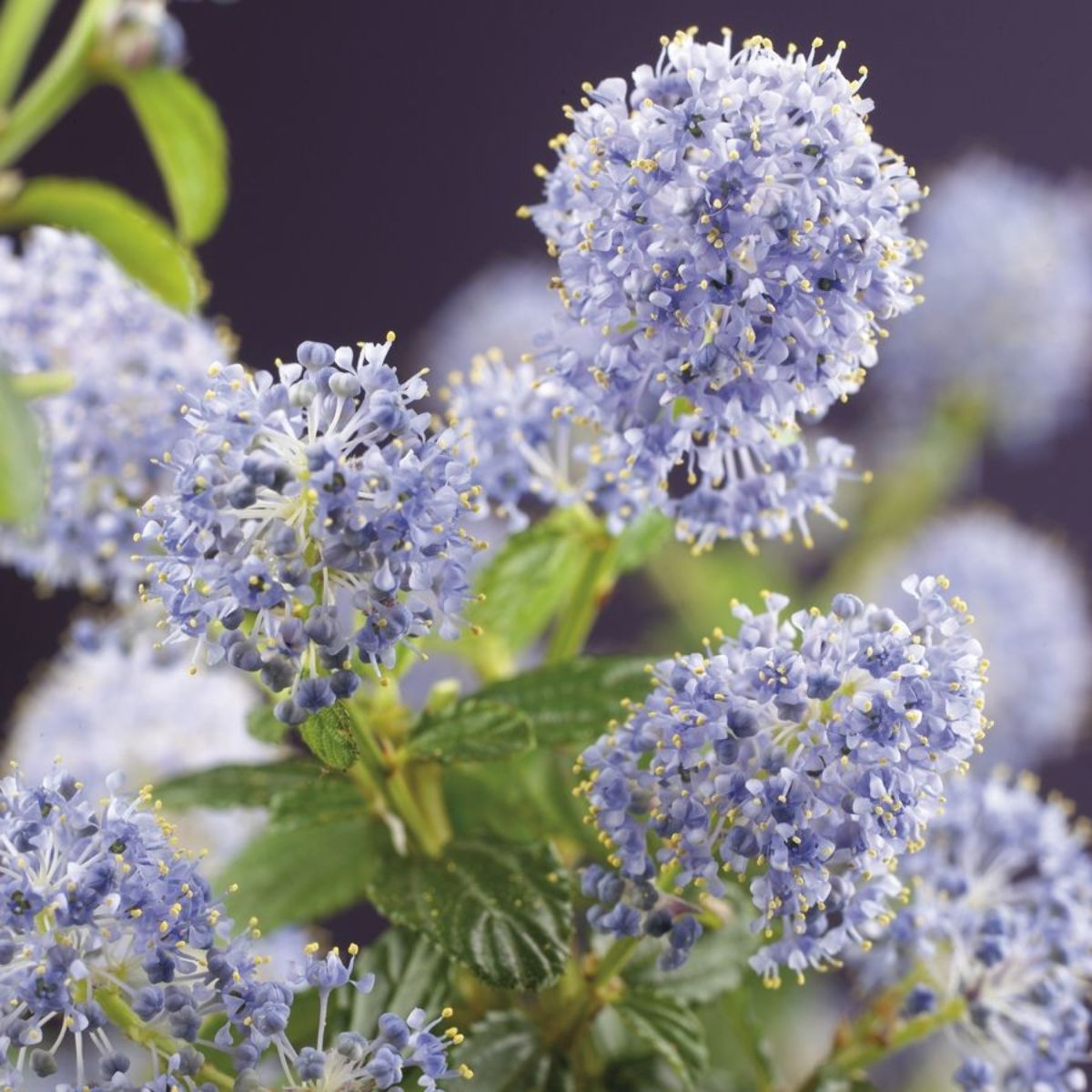 Lav busk, der breder sig. Højde cirka 0,5 m. Stedsegrøn. Skinnende grønne blade. Talrige pastelblå blomster i store toppe. Forår. Solrigt voksested. Følsom over for frost, skal plantes på et beskyttet voksested.