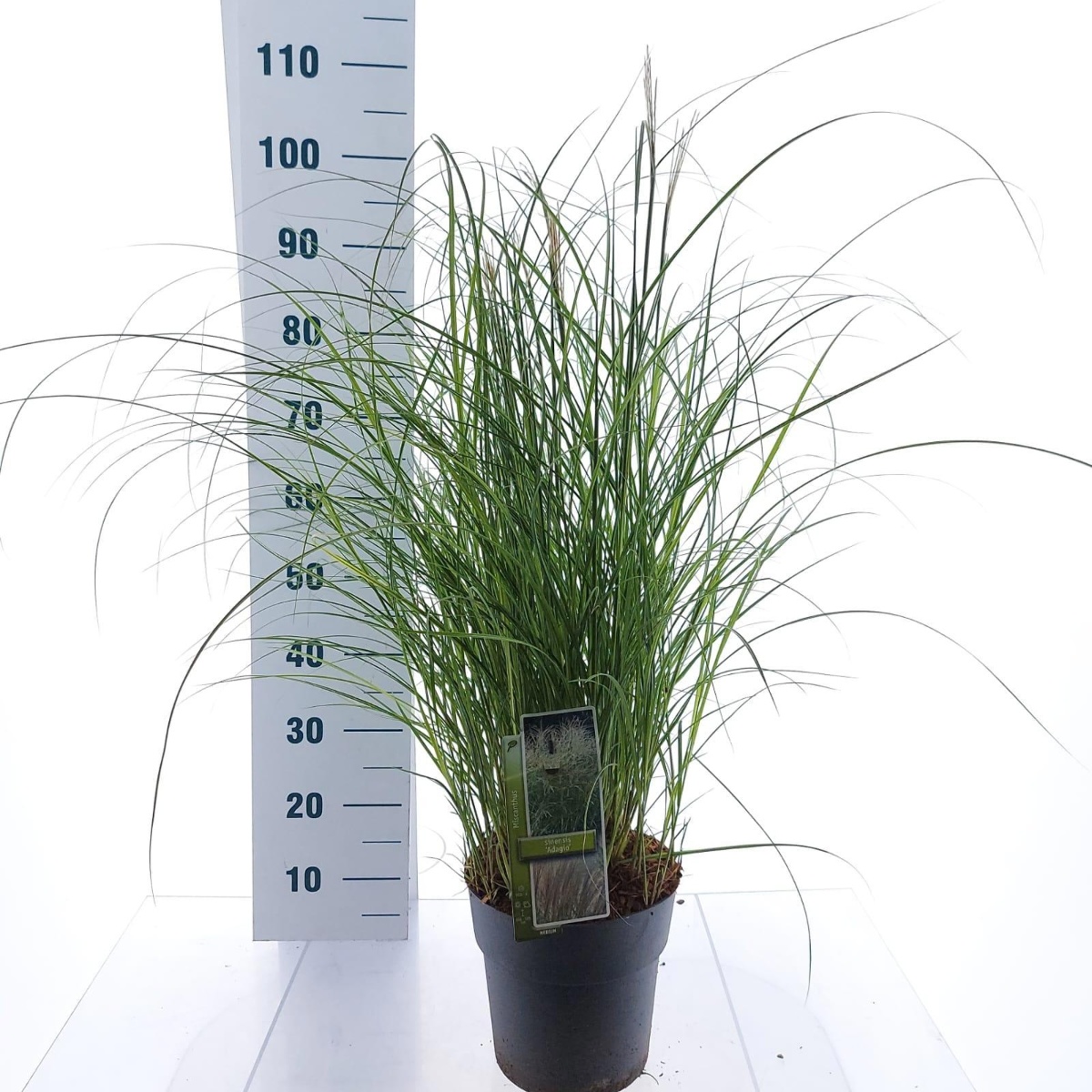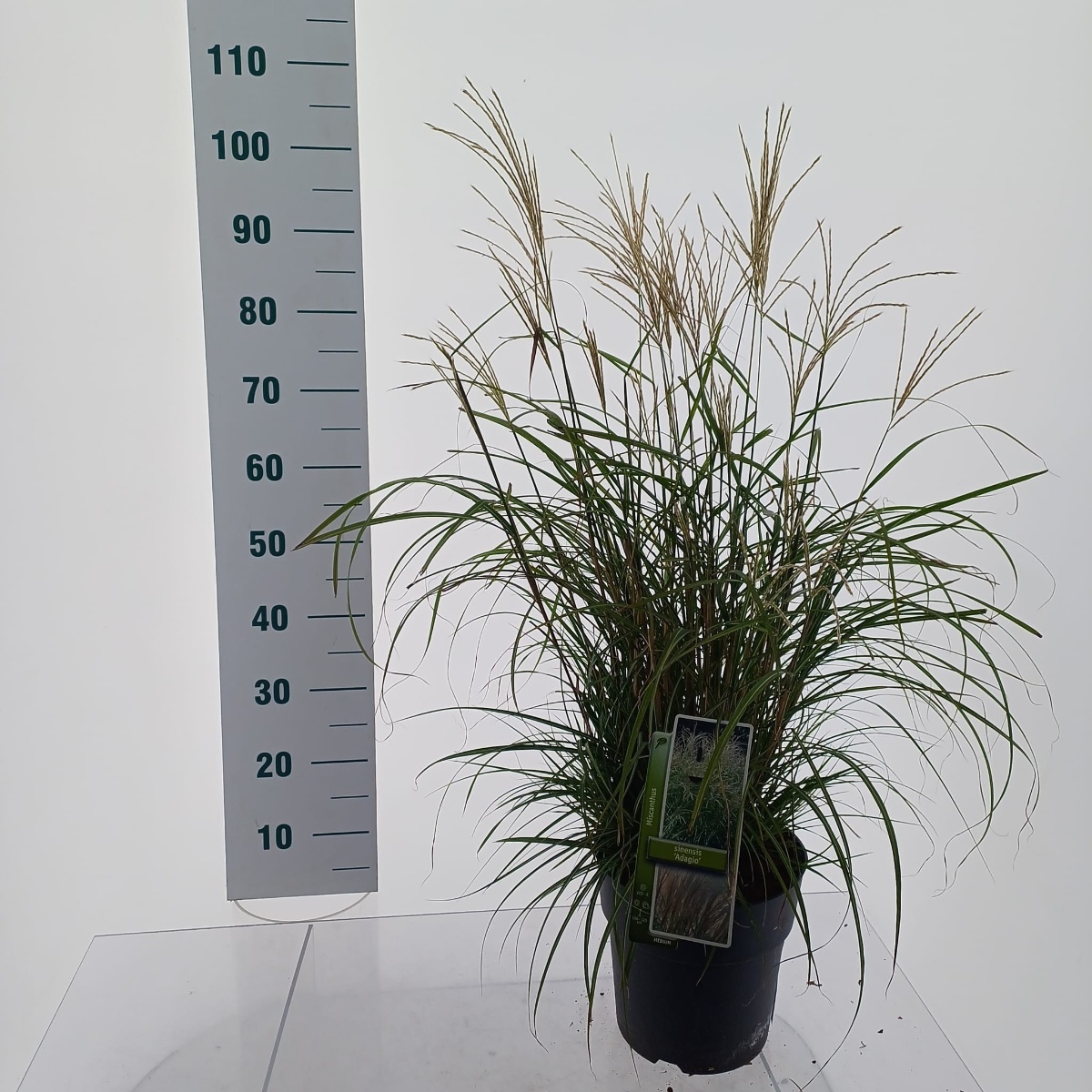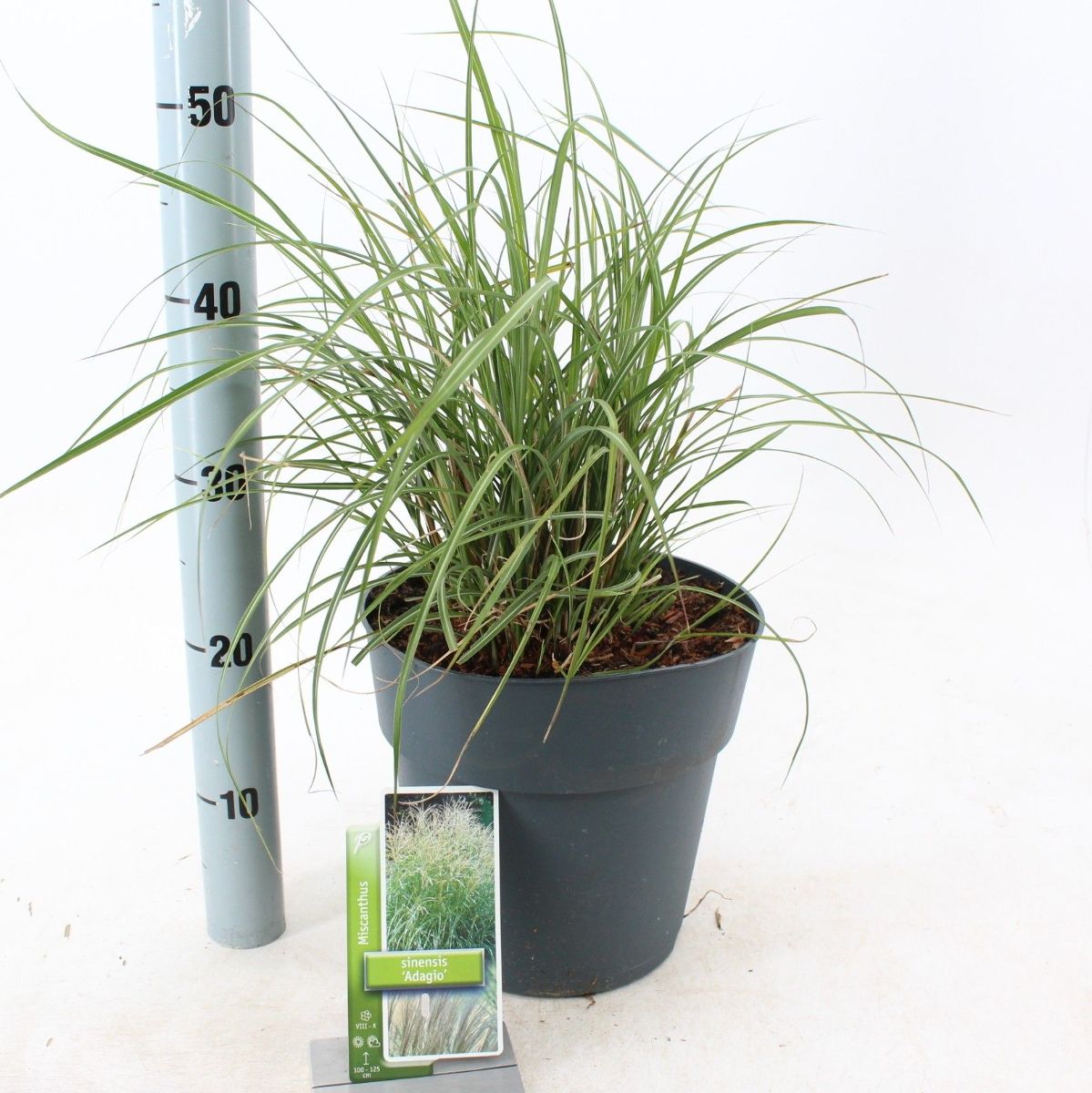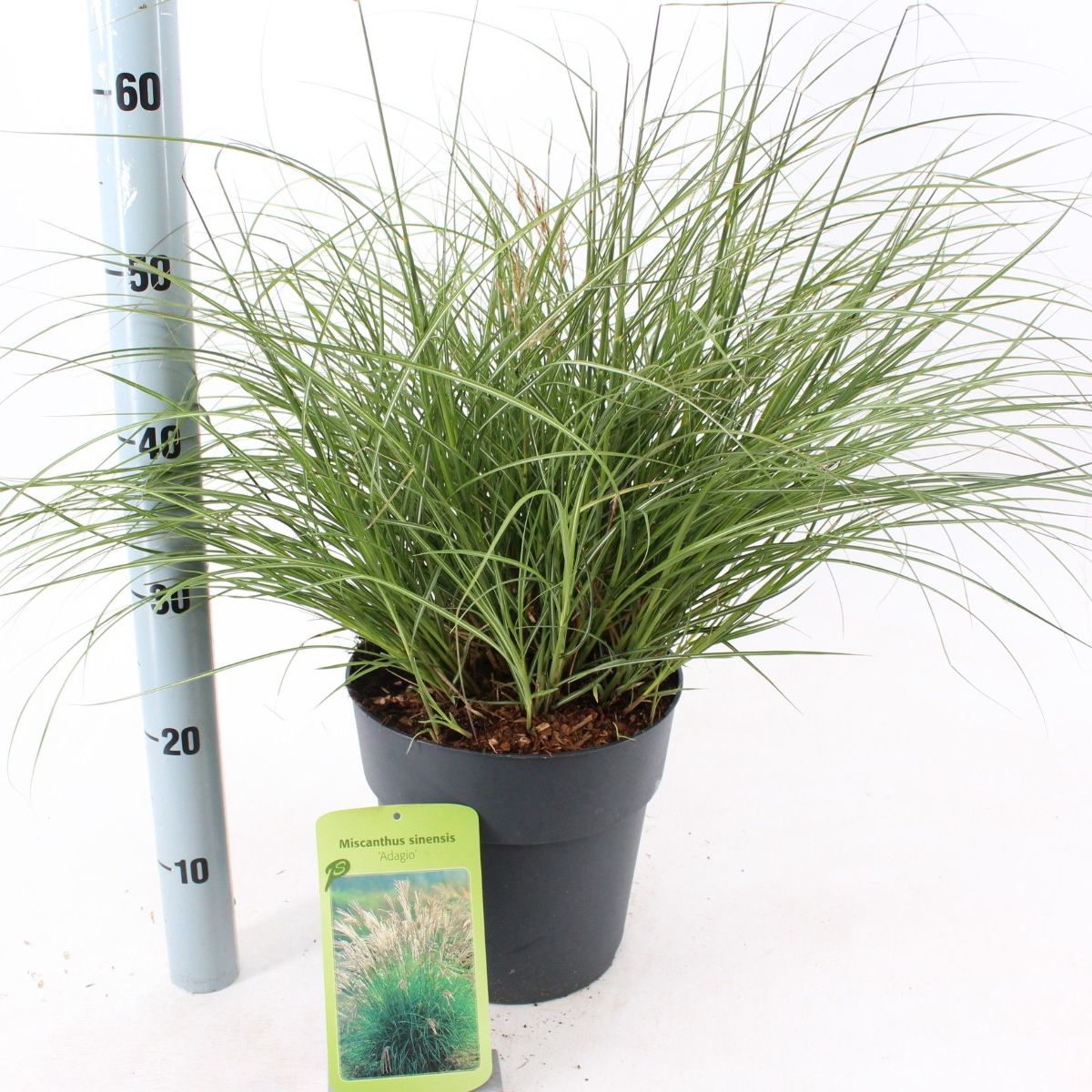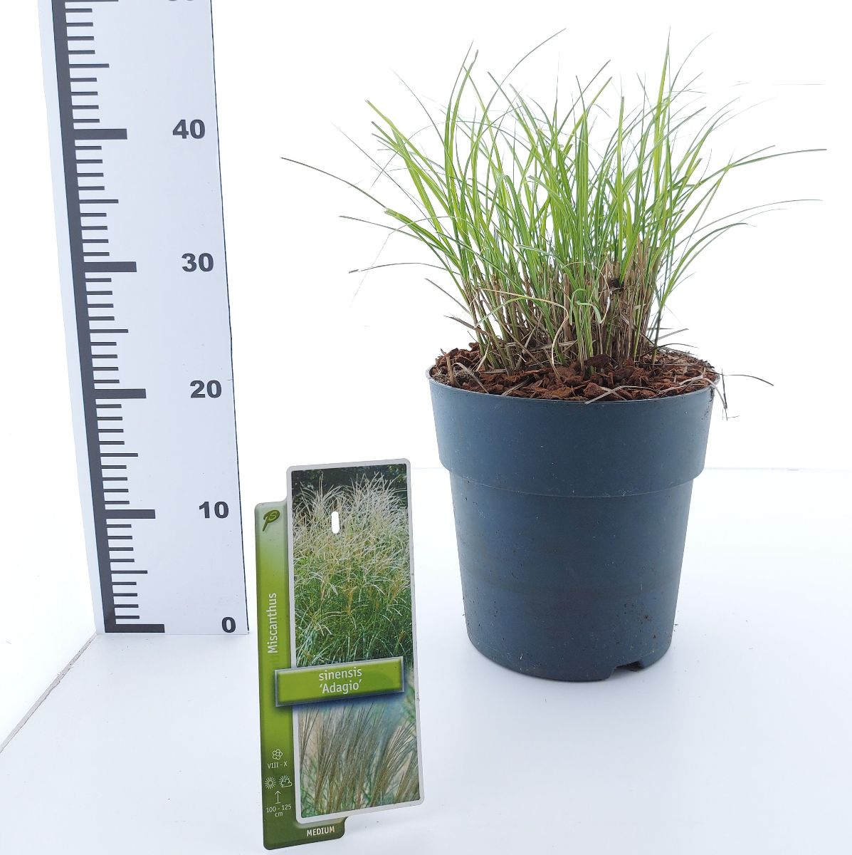 Miscanthus sinensis 'Adagio' er en kompakt prydgræs med fine, buede blade og luftige, sølvfarvede blomsterstande. Perfekt til små haver og som kantplante. Blomstrer fra sensommer til efterår og tilføjer elegance og bevægelse til landskabet.