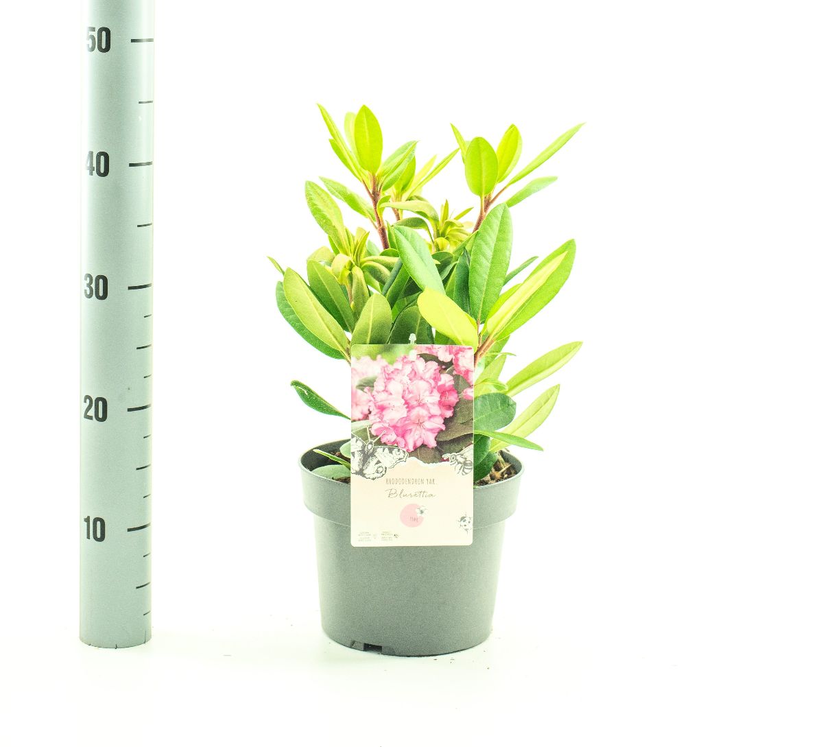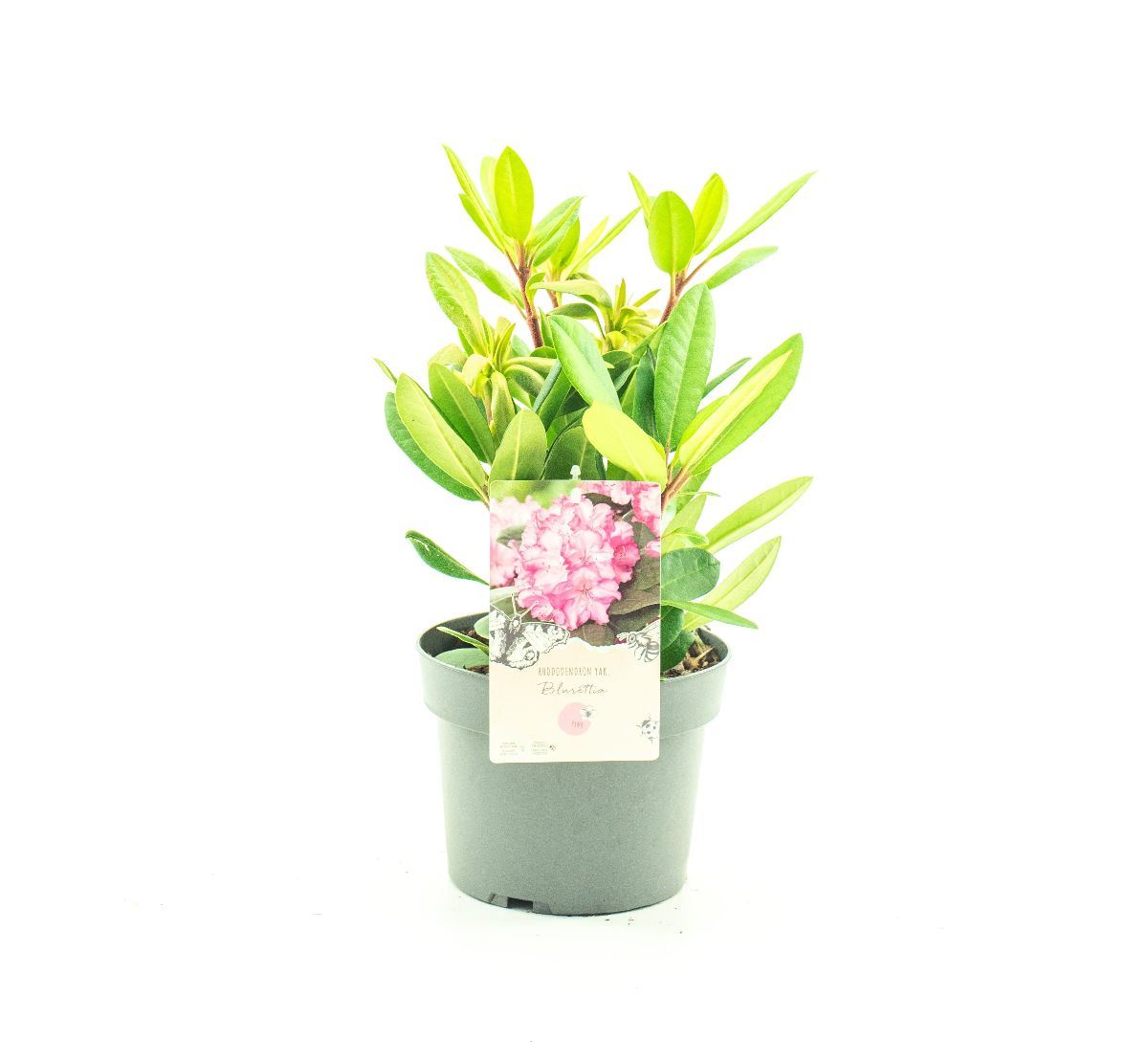 Rhododendron (Y) 'Blurettia' er en smuk, vinterhårdfør busk med store, klokkeformede, lyserøde blomster med lilla toner. Ideel til surbundsbede og som solitær plante. Blomstrer i foråret og tilføjer farve og elegance til haven.