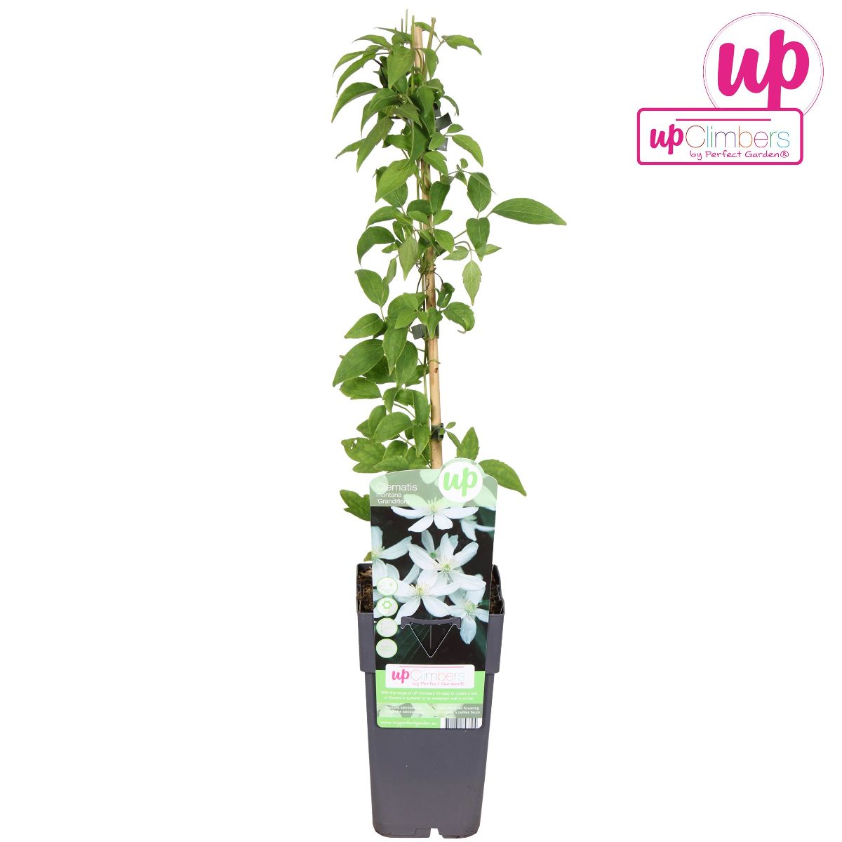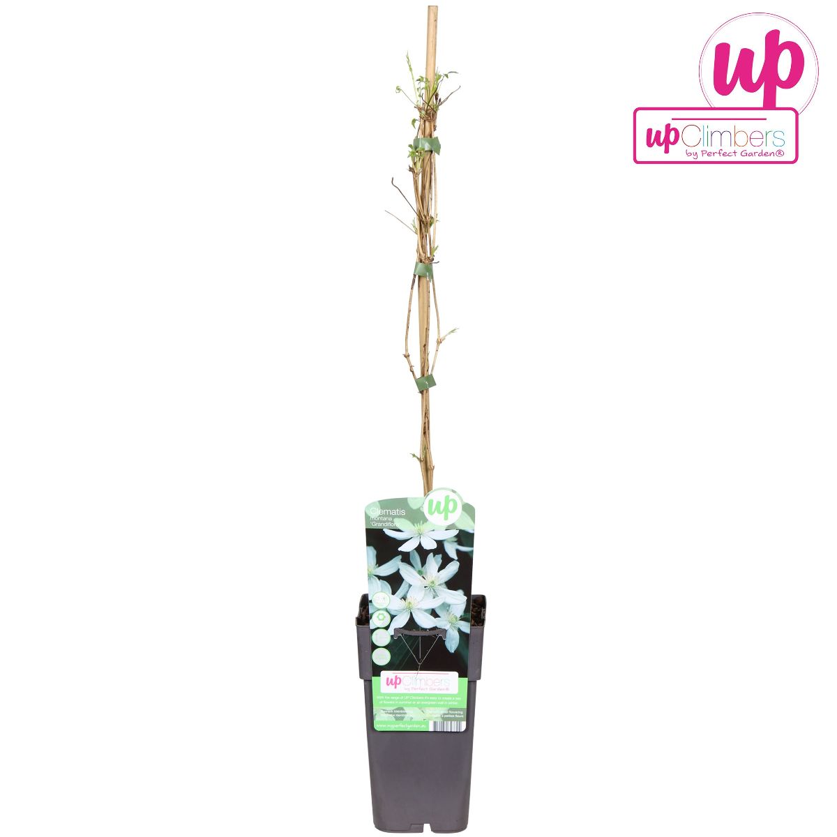 Elegant og kraftig klematis med store stjerneformede, hvide blomster i maj- juni. Trives i sol- halvskygge med "fødderne" i skygge så jorden omkring altid er kølig og fugtig. Gror i en næringsrig jord og kan blive op til 7 m. høj.