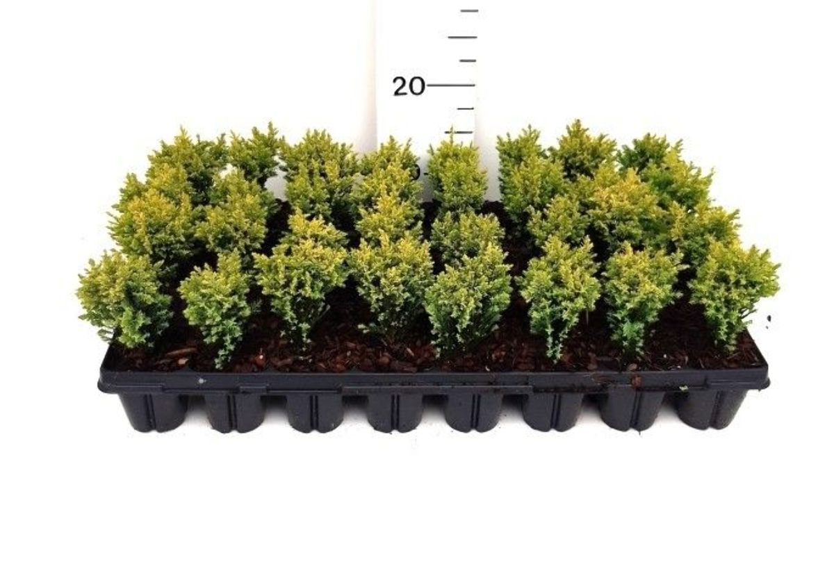 Kegleformet conifer. Højde op til 2 m, bredde cirka 1 m. Kompakt vækst. Langsomt voksende. Løvet svovlgult. Tåler godt beskæring, kan bruges som hækplante. Lyst voksested. Humusrig jordbundstype.