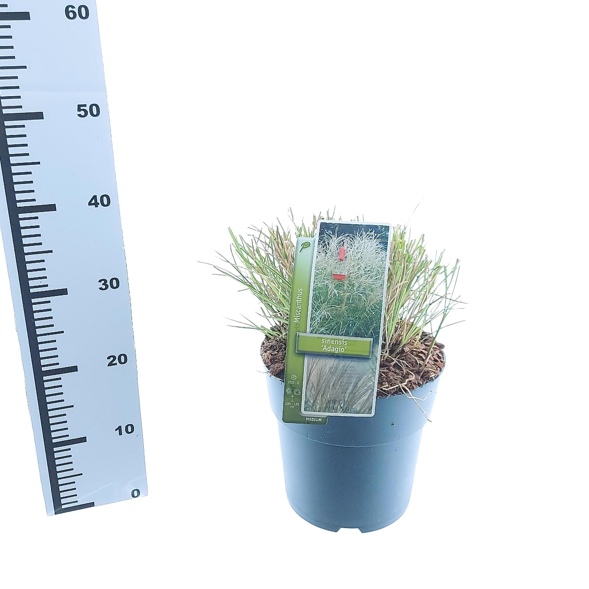 Miscanthus sinensis 'Adagio' er en kompakt prydgræs med fine, buede blade og luftige, sølvfarvede blomsterstande. Perfekt til små haver og som kantplante. Blomstrer fra sensommer til efterår og tilføjer elegance og bevægelse til landskabet.