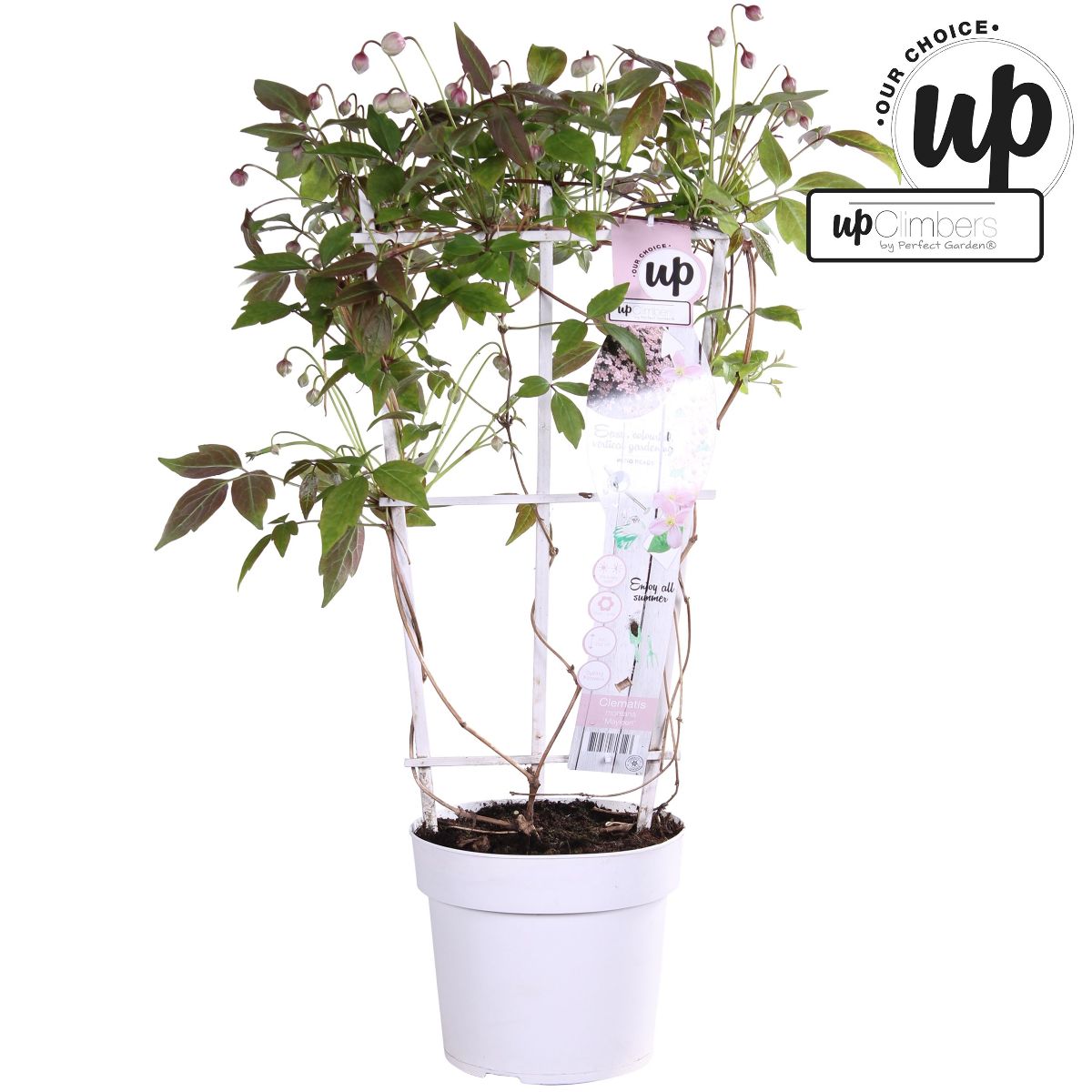 Bjergskovsranke. En smuk klematis der i juni- juli pryder med velduftende, sartrosa blomster. Trives i sol- halvskygge med "fødderne" i skygge så jorden omkring altid er kølig og fugtig. Gror i en næringsrig jord og kan blive op til 6 m. høj.