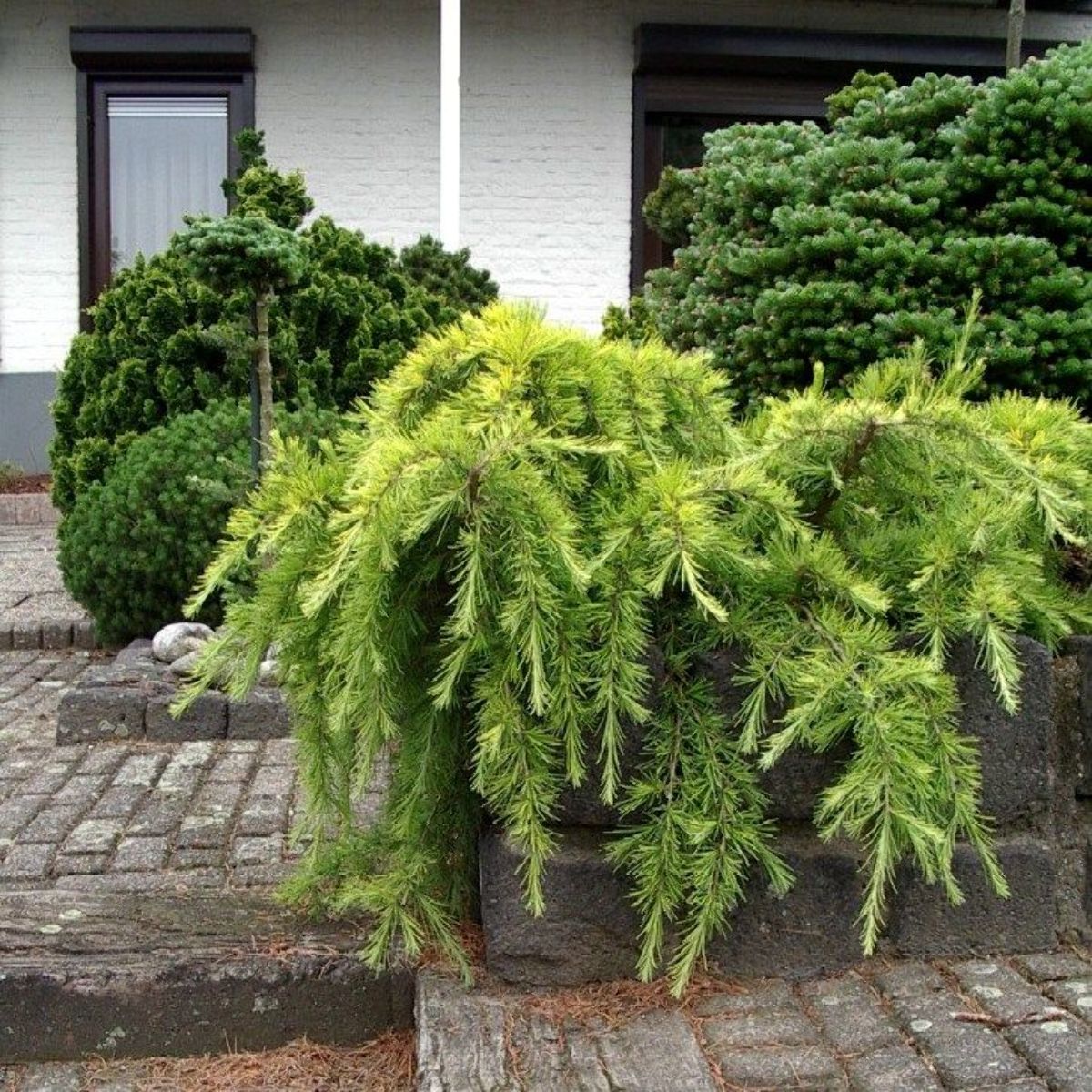 Conifer, der vokser i bredden, med en højde på op til cirka 1 m. Grenene let nedhængende. Langsomt voksende. Nåle i bundter, iøjnefaldende gulgrønne. De unge planter er følsommme for ekstrem kulde. Sol. Ingen kalkrig jordbund.