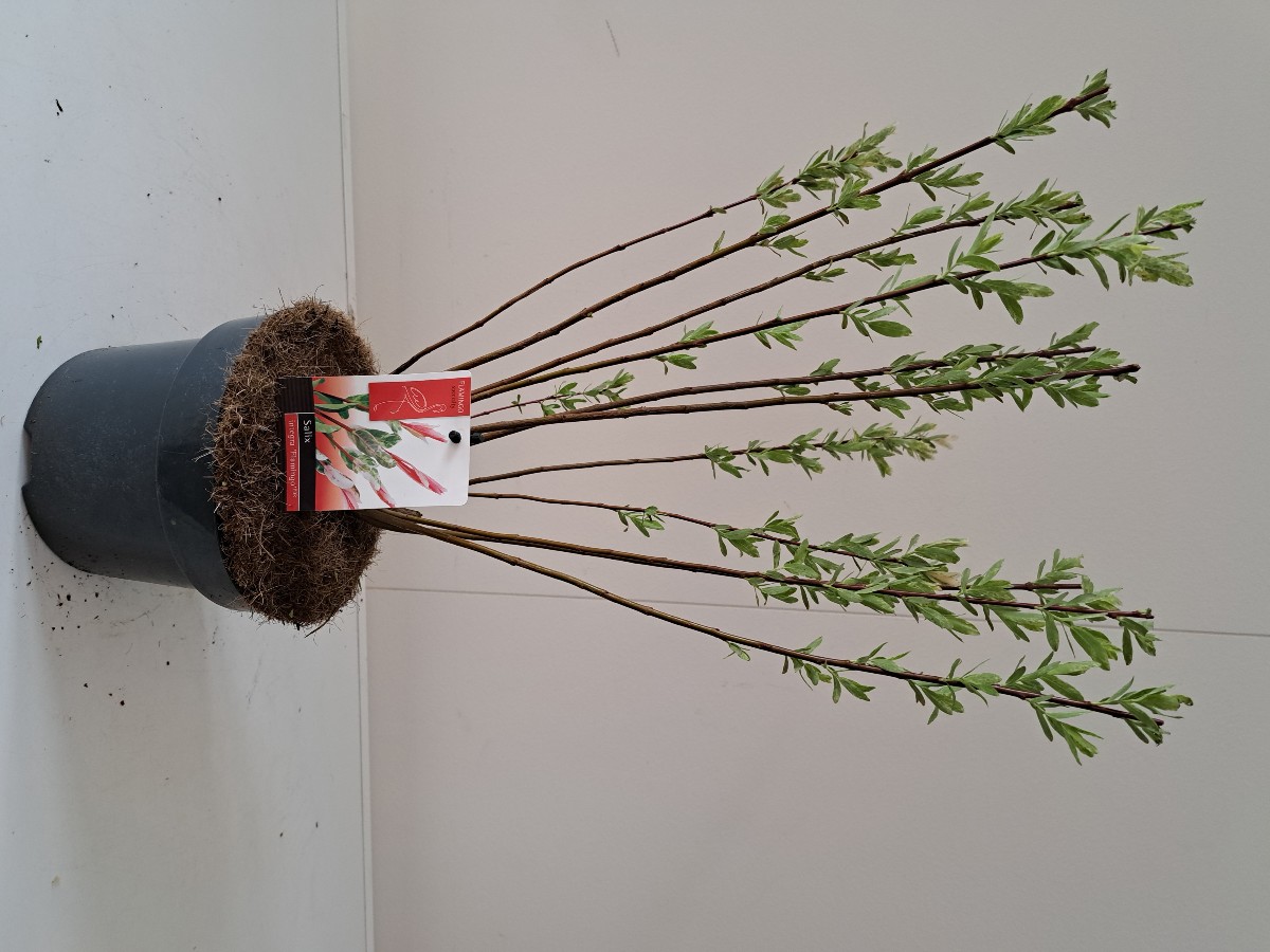 Salix integra 'Flamingo', også kendt som japansk pinkpile, er en iøjnefaldende prydbuske med brogede blade. Denne sort er kendt for sine elegante, smalle blade, der viser en blanding af lyserød, fløde og grøn. Om foråret producerer Flamingo-vilgen også smukke katkins, der lyser op i haven. Det er en alsidig plante, der trives i fugtige jordarter og kan vokse både i fuld sol og delvis skygge.