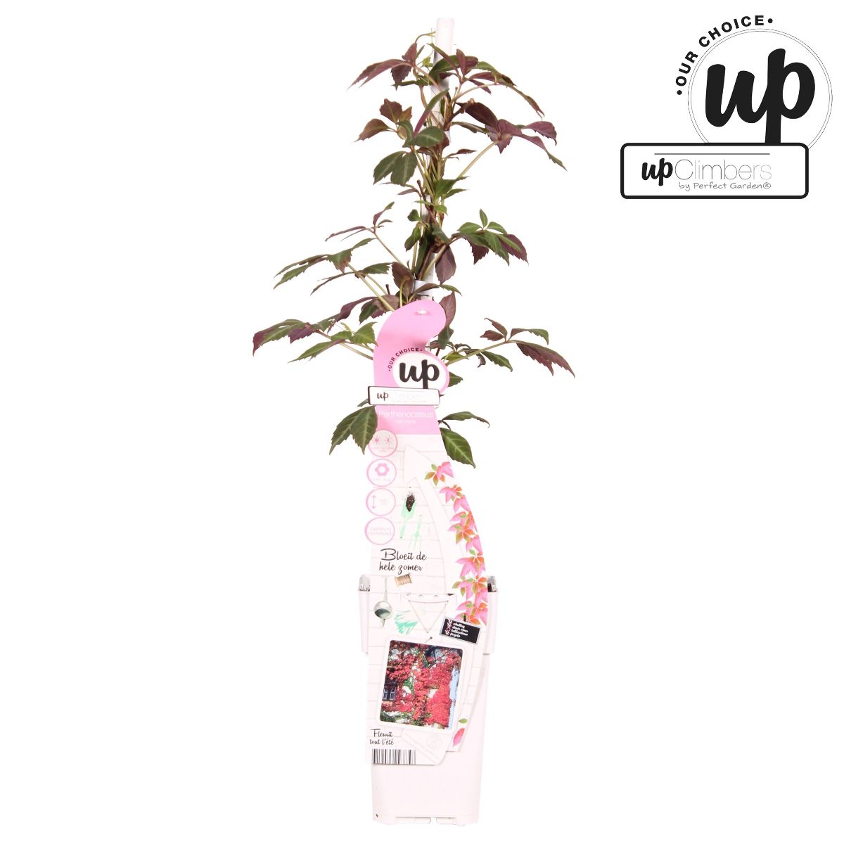 Selvhæftende, løvfældende klatreplante. Højde 8 - 10 m. Bladene sammensat af 5 små delblade. Bronzefarvede til mørkegrønne. Blomster ikke iøjnefaldende. Om efteråret får bladene en pragtfuld rød farve. Beskyttet voksested.