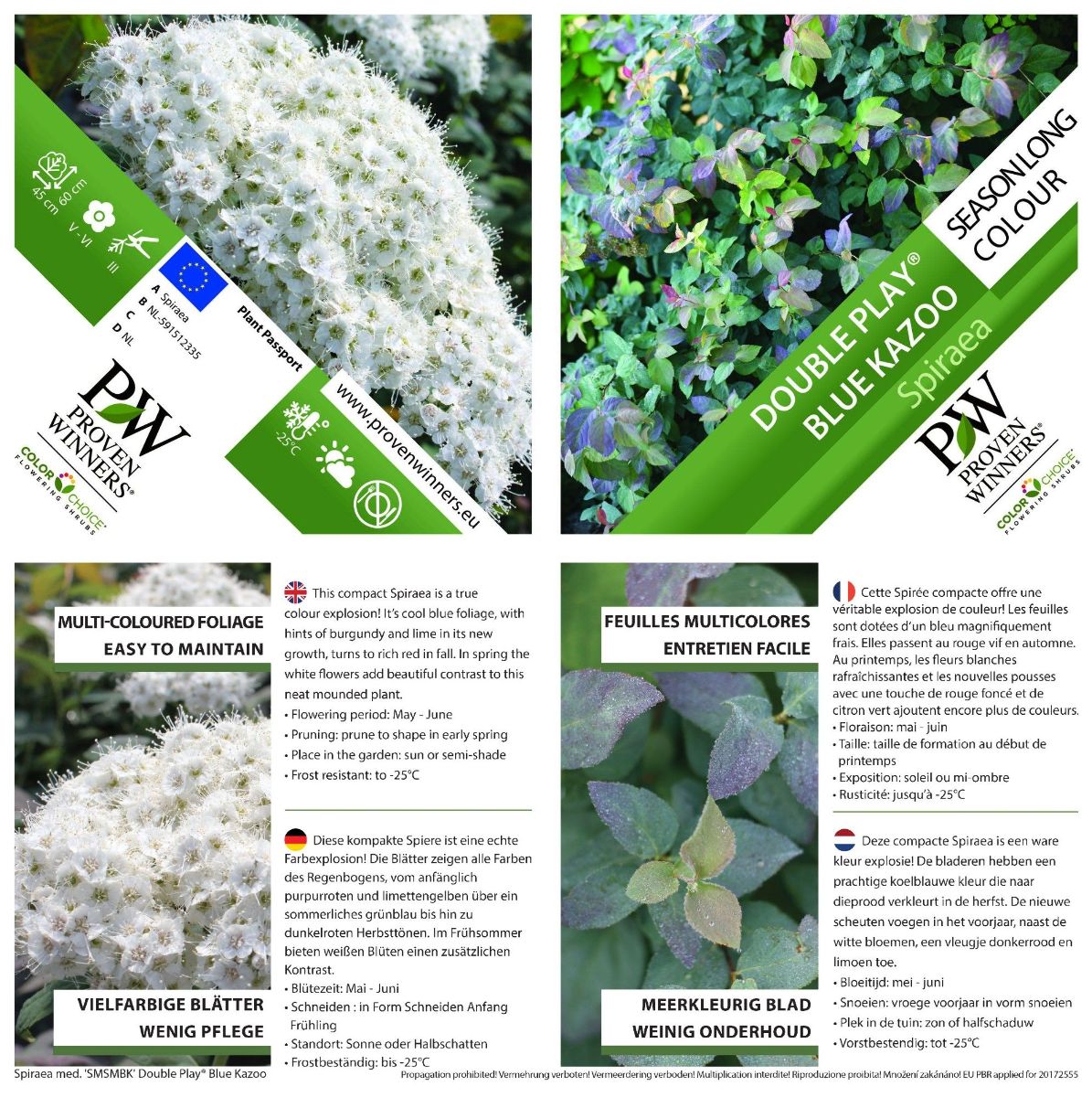 Spiraea media Double Play® Blue Kazoo ('SMSMBK'*) PW