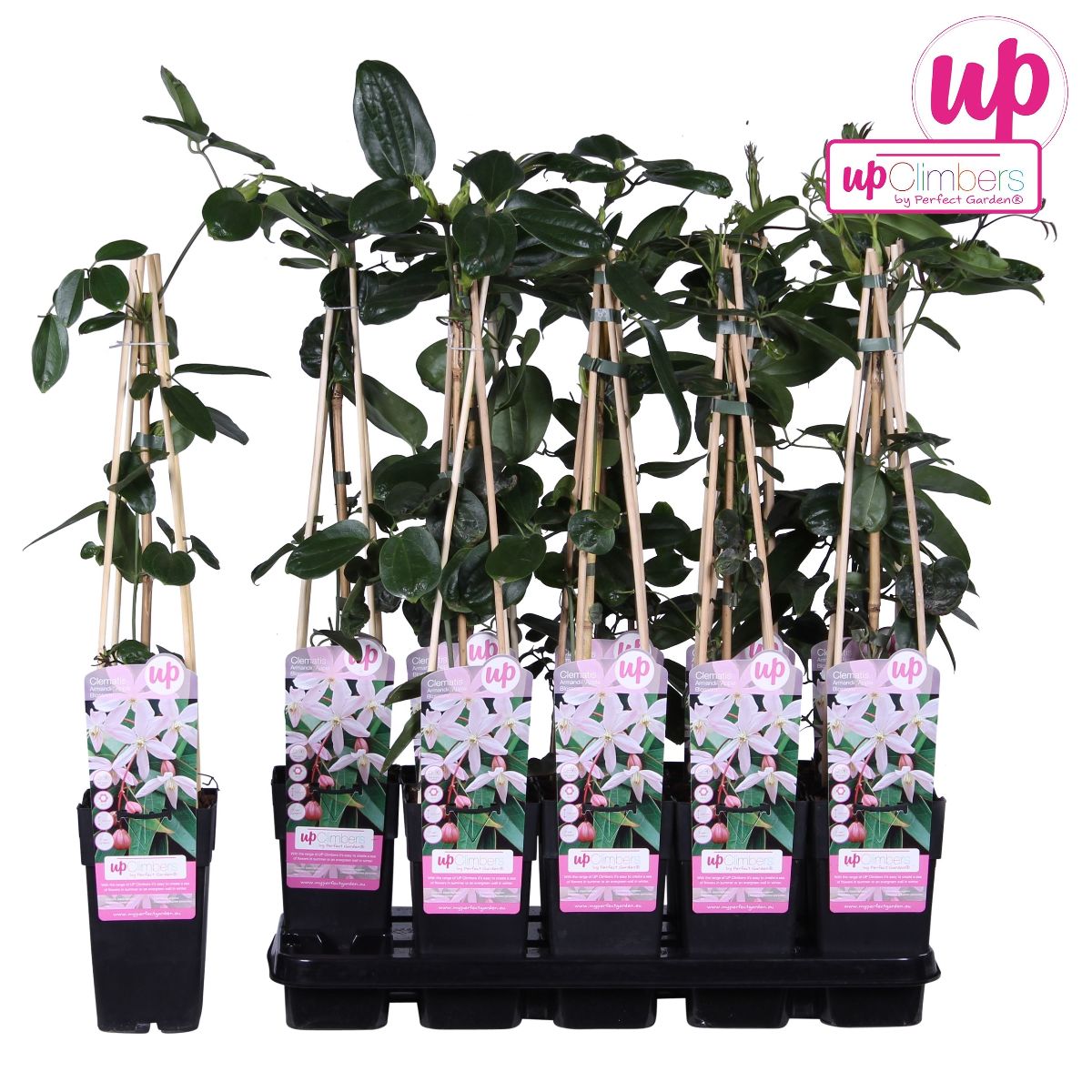 Clematis arm. 'Apple Blossom'