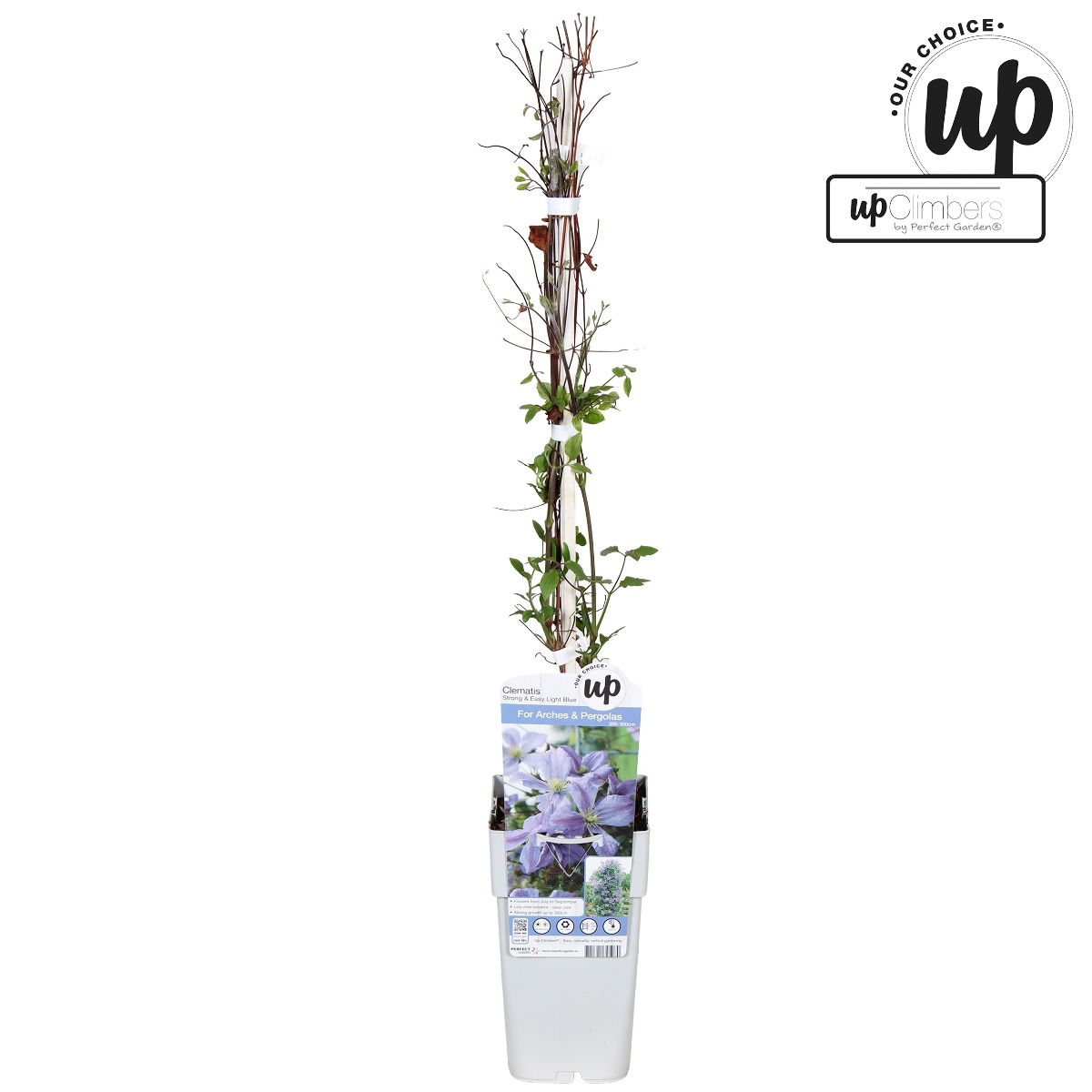 Planten bliver typisk omkring 100 - 200 cm høj og 120 - 150 cm bred. Den er kraftigtvoksende og bruges ofte i slyngende beplantninger. Trives bedst i sol / halvskygge. Det er en fuldt ud hårdfør plante til det danske klima. Planten kræver mellem gødning.Blomster er 6 - 9 cm, blå. Den blomstrer i perioden juni- september.Har mørkegrønne, lappede blade.