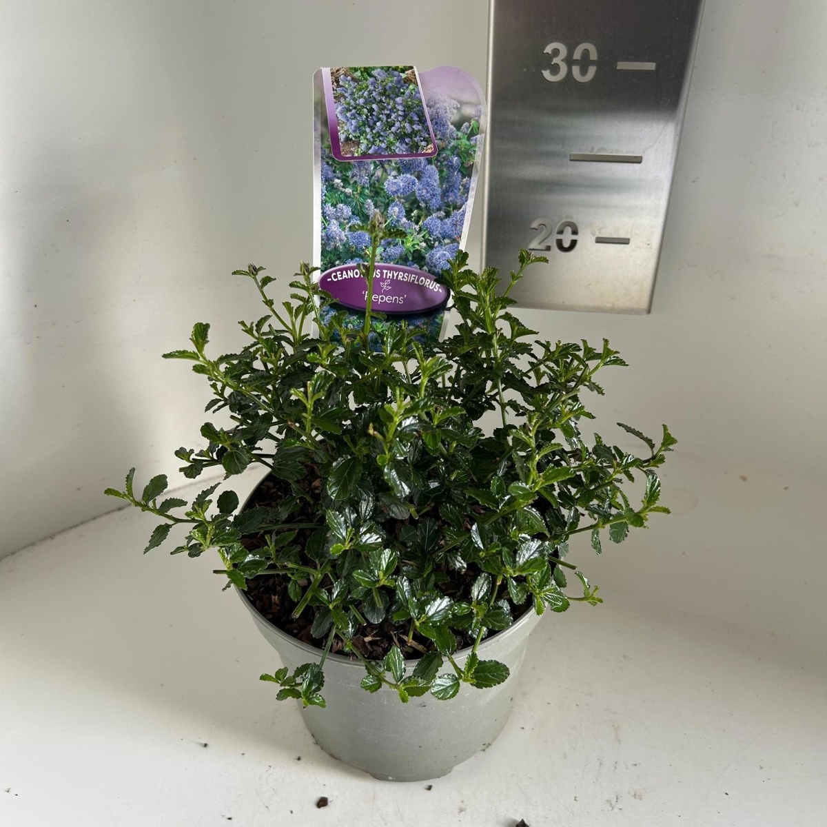 Lav busk, der breder sig. Højde cirka 0,5 m. Stedsegrøn. Skinnende grønne blade. Talrige pastelblå blomster i store toppe. Forår. Solrigt voksested. Følsom over for frost, skal plantes på et beskyttet voksested.