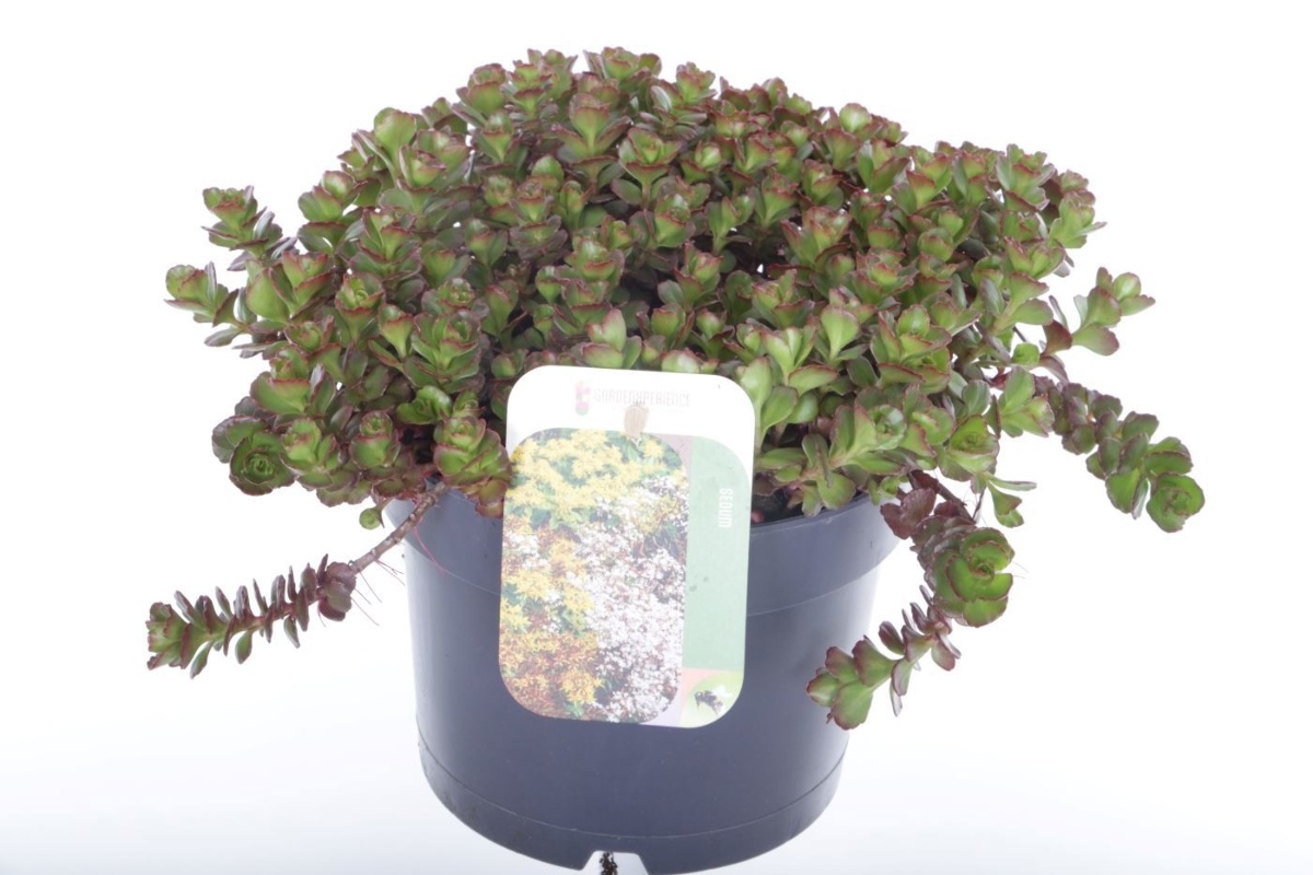 Bunddækkeplante. Højde op til 15 cm. Stedsegrøn. Fedtagtigt løv, grønt med violetblå nuancer. Blomsterne røde. Aug. - sept. Sol - halvskygge. Helst tør, mager jordbund. Til stenbed, gærder og på tagpander.